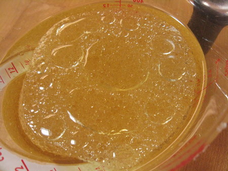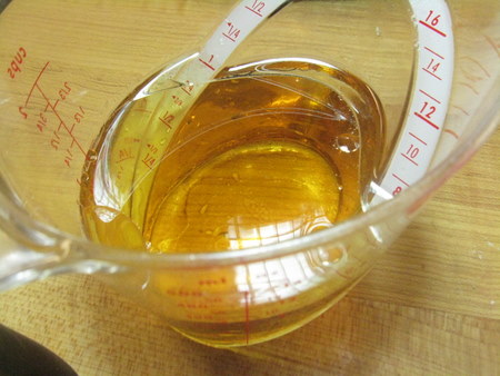 Add the vegetable oil and Fiori di Sicilia to the brandy/water mixture. Stop and relax, admiring the lava lamp-like ebb and flow of the mixture. Simple pleasures, man, it's all about simple pleasures.
