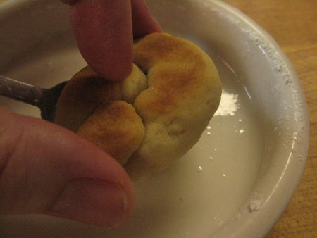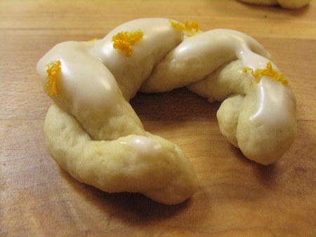 Break off small pieces of dough, each about the size of a walnut. Now, here's where you get to play a bit. You can make simple wreaths or rings, twists, sticks, braids, whatever suits your fancy. For a special presentation, try crescents.