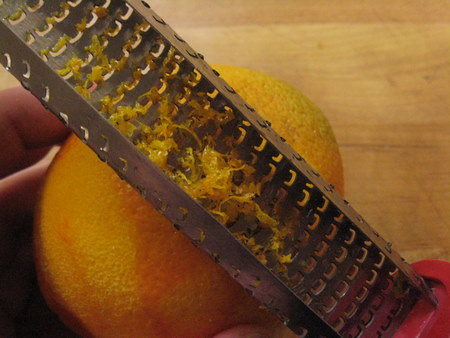 Fresh orange zest really brings out the citrus tones of the Fiori. Our handy Microplane zester shaves just the colored zest and none of the pith. If you hold the plane bottom side up, you can easily see how much zest you've gathered.