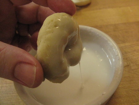 As you can see, the bottoms will be a lovely golden brown. Dip the cooled cookies into the glaze and allow to drip for a moment.