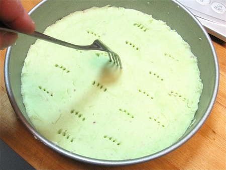 Use a fork to prick the dough all over; this allows any steam to escape, and prevents the shortbread from bubbling as it bakes.