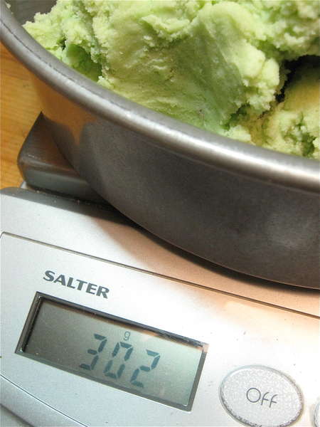 ...becomes 302g of dough in each pan.
