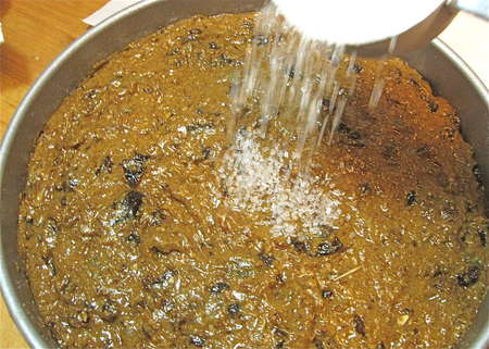 And of course, there's whiskey, if you're so inclined. Hey, you have to soften the fruits in SOMETHING, right? The original recipe calls for a thorough soak in hot brewed tea; but a few tablespoons of harder stuff is never amiss.