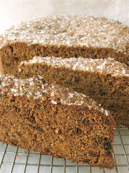 Sprinkle the top of the loaf heavily with coarse white sparkling sugar. For those of you uncomfortable with throwing all caution to the winds, I actually measured how much I used: 2 1/2 tablespoons (39g).