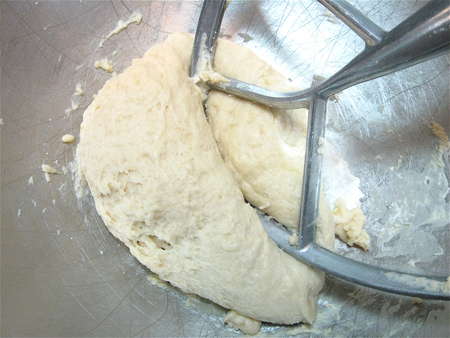 Beat first at medium speed, to combine; then at high speed, for a total of about 90 seconds, to make a soft dough.