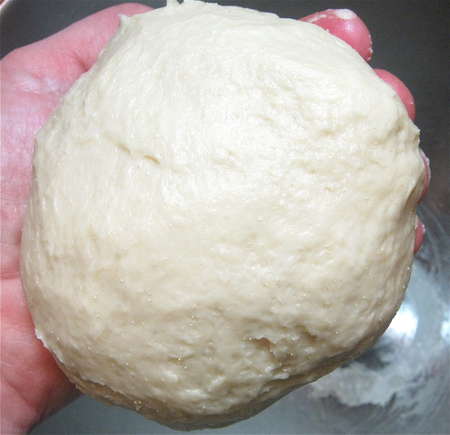 Notice how rough this is, compared to well-kneaded yeast dough; that's OK.