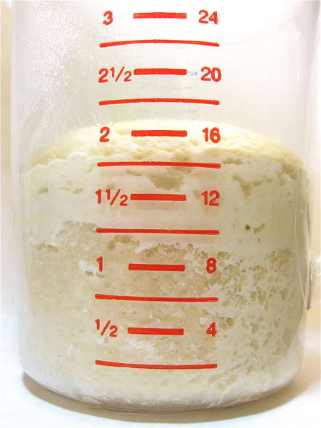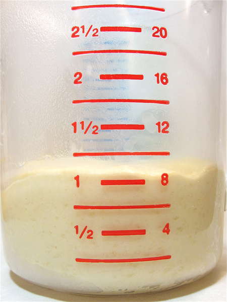 Place the dough in a lightly greased bowl (or measuring cup), cover it, and refrigerate overnight, or for up to 18 hours. It won't rise much; the bowl or cup can be small.