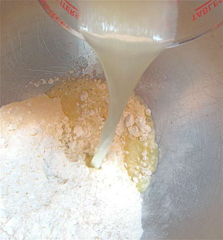 Add the liquid ingredients to the dry ingredients.