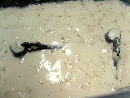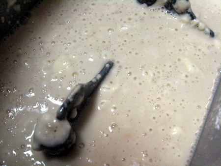 Look at that lovely sponge – lots of bubble action and foaminess. If you check out the paddles in the first picture, then compare the second picture, you'll see how much the sponge developed in that short amount of time.