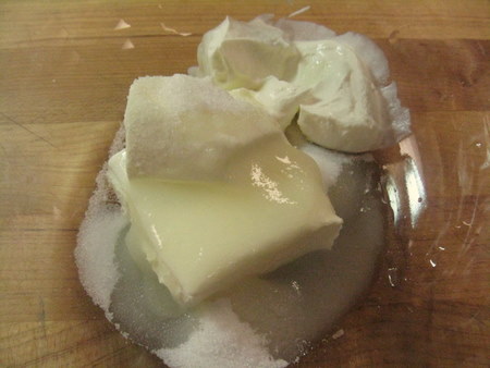 Now is a good time to make sure your sour cream and cream cheese for the filling are out of the fridge and warming up.