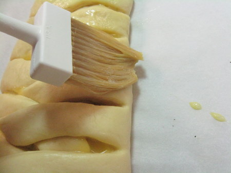 *Repeat the rolling, filling and braiding steps with your second piece of dough. Cover both and set aside to rise.*