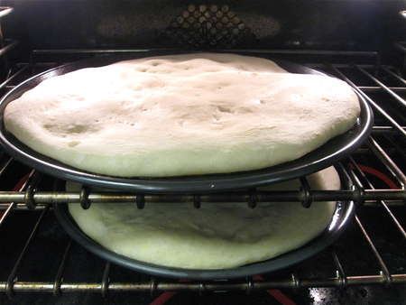 Lightly grease two 12” or 14” round pizza pans; or a couple of baking sheets; or a couple of pieces of parchment (if you're going to bake on a pizza stone).