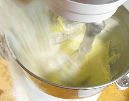 Try to get all of the flour into the bowl, as I'm NOT doing here. Just one of those photo-snapping instances when 3 hands and 2 pairs of eyes would have been useful...