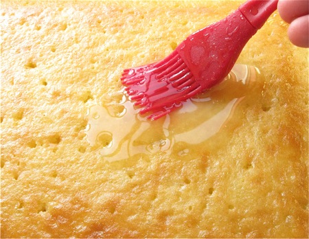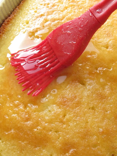 Stir the glaze to combine, and immediately brush it onto the hot cake; be generous.