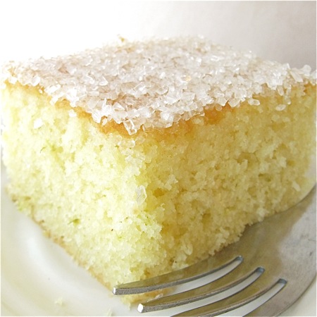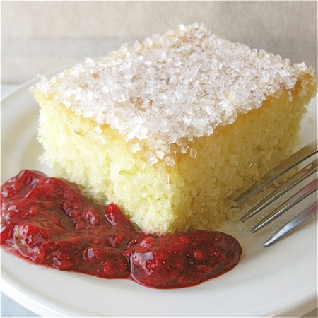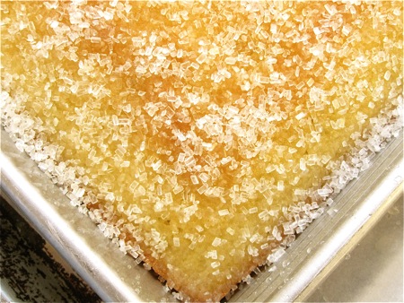 Sprinkle the sugar over the glaze-topped cake.