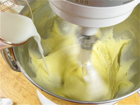 Add 3 cups (12 3/4 ounces) King Arthur Unbleached All-Purpose Flour alternately with 1 cup milk.