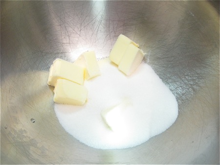 Put 1/2 cup sugar and 1/2 cup butter in a bowl.