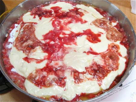 But warm cake with warm berries, prepared on the stovetop – no oven required? Works for me.