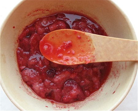Thaw the fruit, if it's frozen. Chop it coarsely, and let it sit for awhile, to release its juices.
