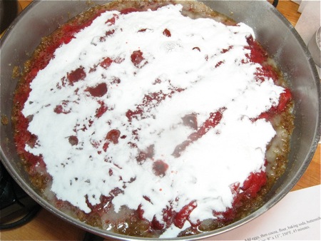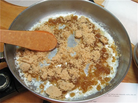 Turn your skillet back on; we want it heated up to 275°F by the time the cake batter's ready.