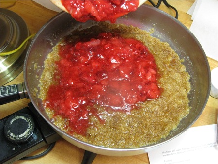 While the fruit is resting, prepare your skillet.