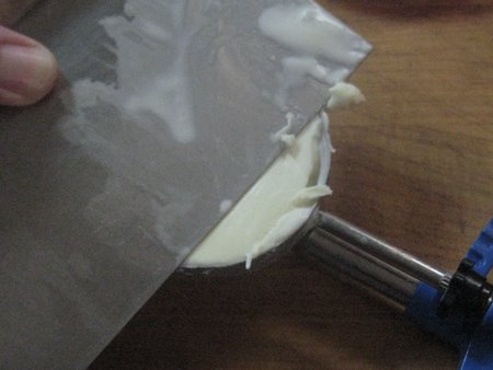 Hollow out a depression in the scoop with a spoon or your thumb. No licking, please!
