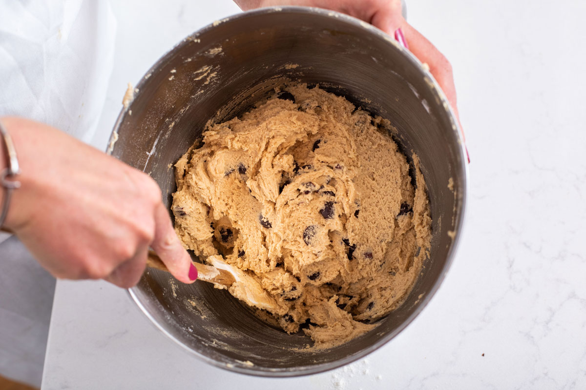 Guesstimated that I’d used about 20% of the batter so far, adjusted the oats accordingly, added them, and baked off 1 cookie for a sanity check.