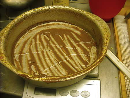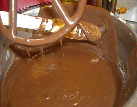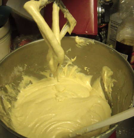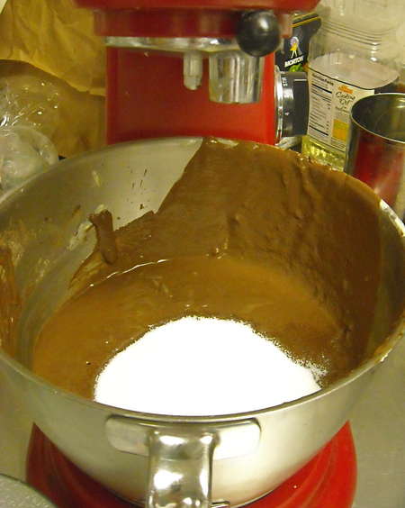 ... and immediately the texture changed. See how it's thinned out? The cake turned out fine, despite its unorthodox mixing sequence.