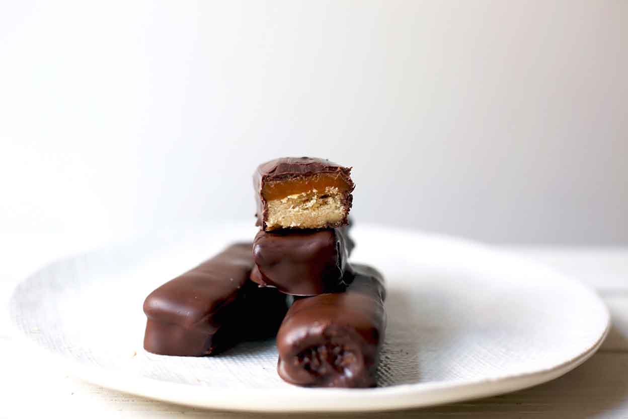 These bars definitely remind people of Twix® bars, both in shape and taste, but OH, so much better when top-end caramel and chocolate is used. Think of them as Twix® on Warren Buffett's budget.