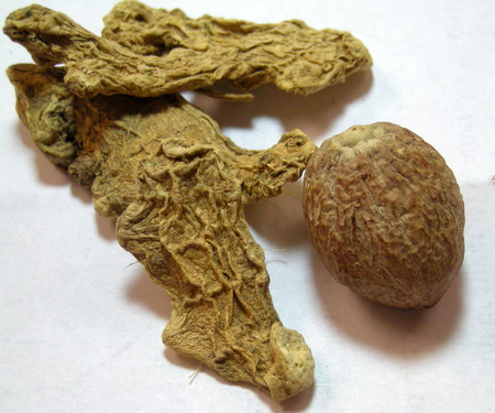 Dried ginger root (left) and whole nutmeg (right) are deeper and more robust in flavor than pre-ground spices. If you have them, definitely use them in this recipe; they'll make the spice mixture sing. Simply grate them with a Microplane or spice grater as you would grate hard cheese.
