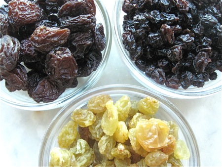 Next, ready your fruit. We'll be using two kinds of raisins, plus Zante currants.