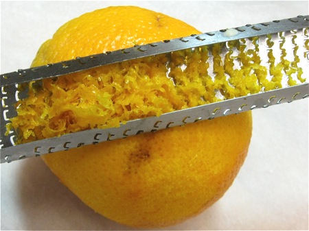 Grate the rind from 1 small-to-medium lemon. A Microplane grater-zester works extremely well – and you never worry about grating your knuckles.