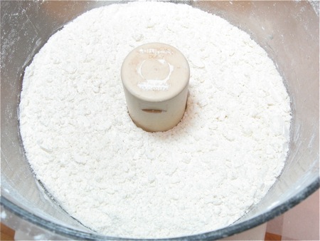 Next, we'll make the tart dough. This is most easily done with the help of a food processor, though it's also simple to make it by hand.