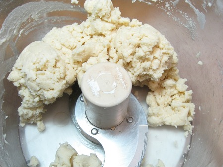 Unlike a typical American pie crust, this “short crust” shouldn't have any large pieces of butter remaining; the mixture should look like breadcrumbs.