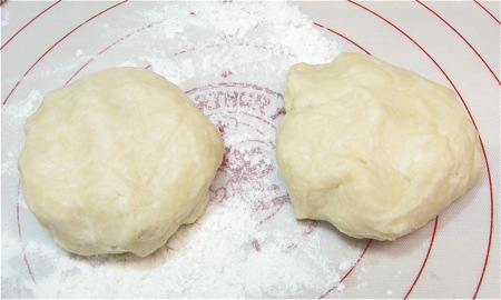Divide the dough in half, and shape each piece into a flattened ball, or wheel.