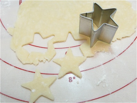 Cut stars from the dough scraps: 1 1/4" stars for the mini tarts, 2" stars for the small tarts.