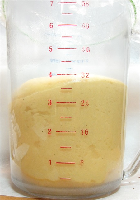 Place the dough in a lightly greased bowl or large (8-cup) measuring cup, cover it, and let it rise for 1 hour, or until it's quite puffy, though not necessarily doubled in bulk.
