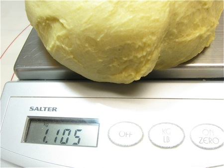 The dough has risen to about half again its size; that's fine. This dough, with its high sugar and fat content, isn't a vigorous riser.