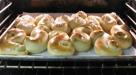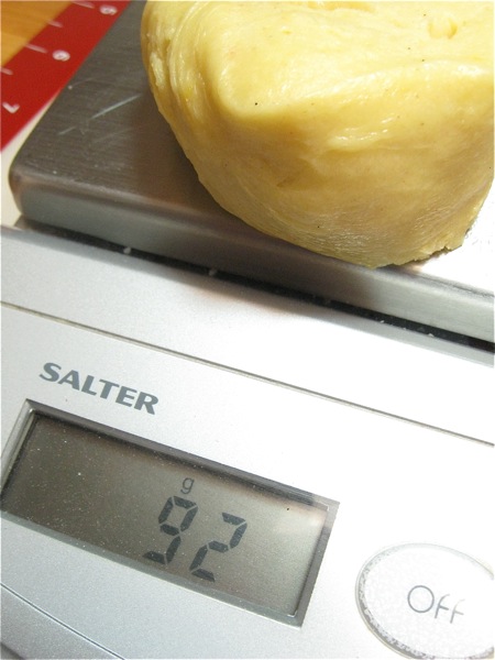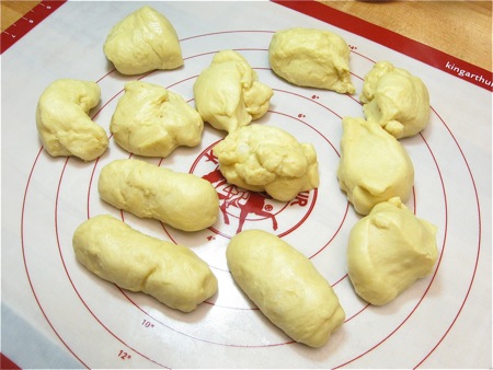 Gently deflate the dough, and divide it into 12 equal pieces. A scale makes this job easy; divide the dough in half, then in half again, then in thirds.