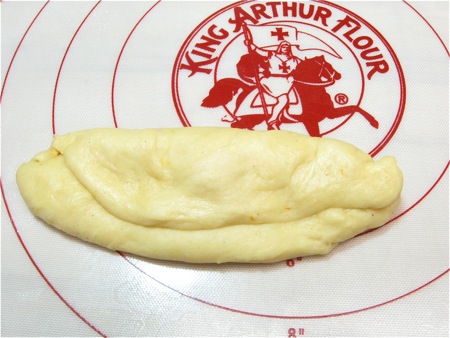 Flatten again, and fold it over again. As you go through this process, the dough will elongate on its own.