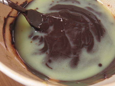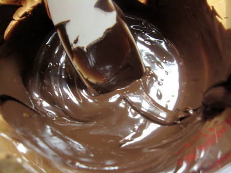 Begin by melting your chocolate over a double boiler or in the microwave. Stir until no lumps remain and the chocolate is just warm to the touch.