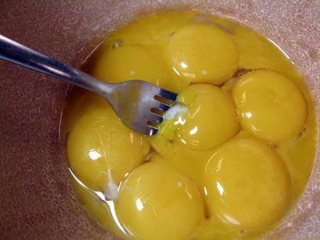 In a medium-sized bowl whisk the egg yolks until well blended.