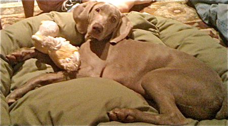 COOPER, Weimaraner: 5 stars, definitely; a big paws up. Good taste, very crunchy, and too big for the cats to handle. Though they were sniffing around my bed for crumbs...