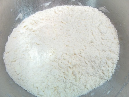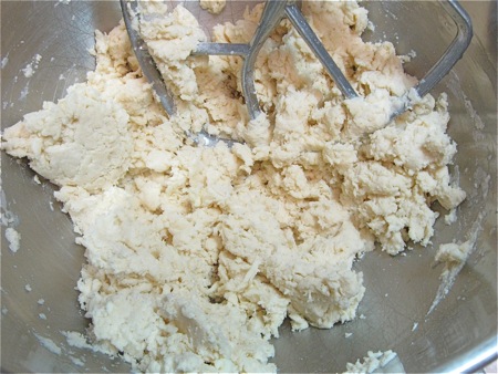 Unlike a typical American pie crust, this “short crust” shouldn't have any extra-large pieces of butter remaining; the mixture should look like coarse breadcrumbs.