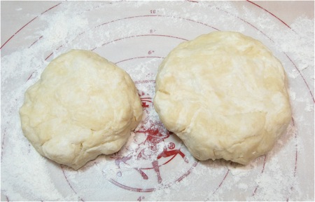 Divide the dough into two pieces, making one slightly larger than the other. The larger piece will be the bottom crust; the smaller piece, the top crust.