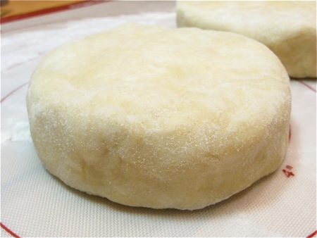 Shape each piece into a flattened ball, or wheel; they should look like big hockey pucks. Wrap in plastic, and refrigerate for 30 minutes.