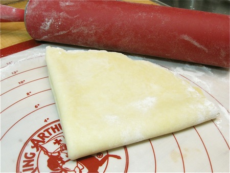 Unwrap the larger piece of dough, and put it on a lightly floured work surface. For ease of rolling AND cleanup, I highly recommend this silicone rolling mat.
