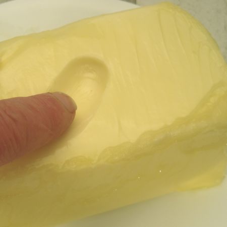 The butter should be soft enough to be indented with a light touch of your finger.