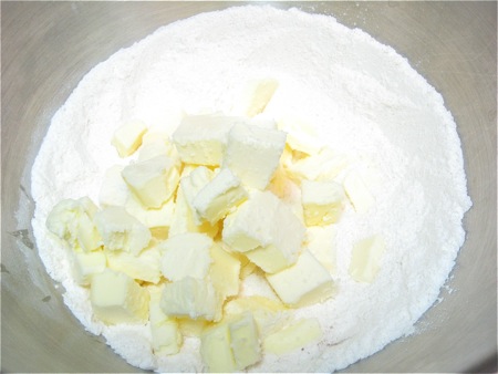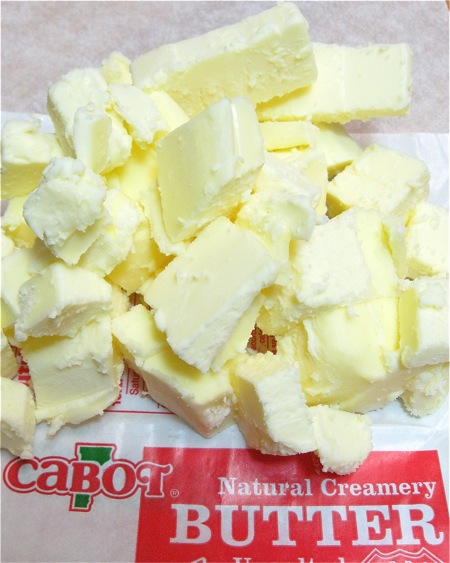 Cut 16 tablespoons (227g) cold butter into pats or cubes; don't fuss over this, just chop it up.