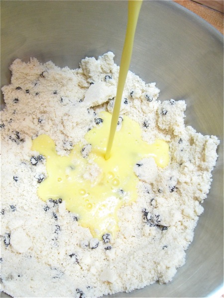 Add the currants to the dry ingredients, and stir to combine.